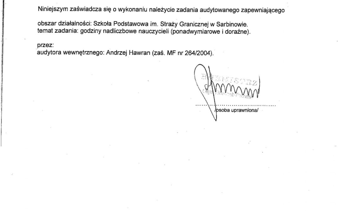 • Zaświadczenia o sporządzeniu sprawozdania z wykonania planu audytu wewnętrznego