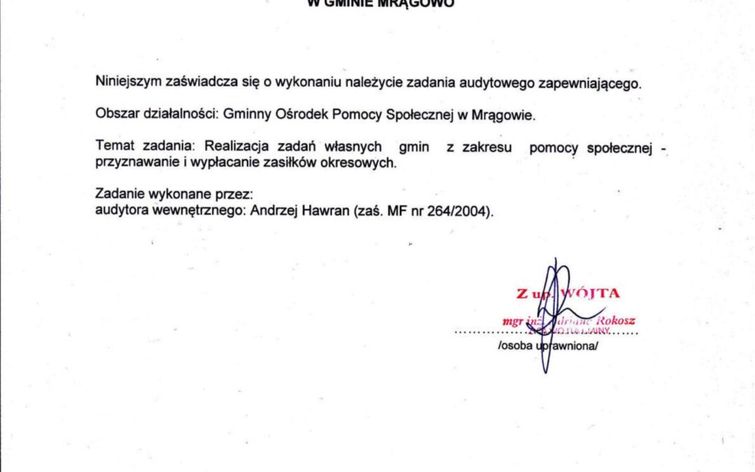 zaświadczenia o należycie wykonanych zadaniach audytowych