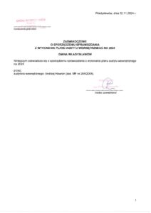 Zaświadczenia o sporządzeniu planu audytu wewnętrznego