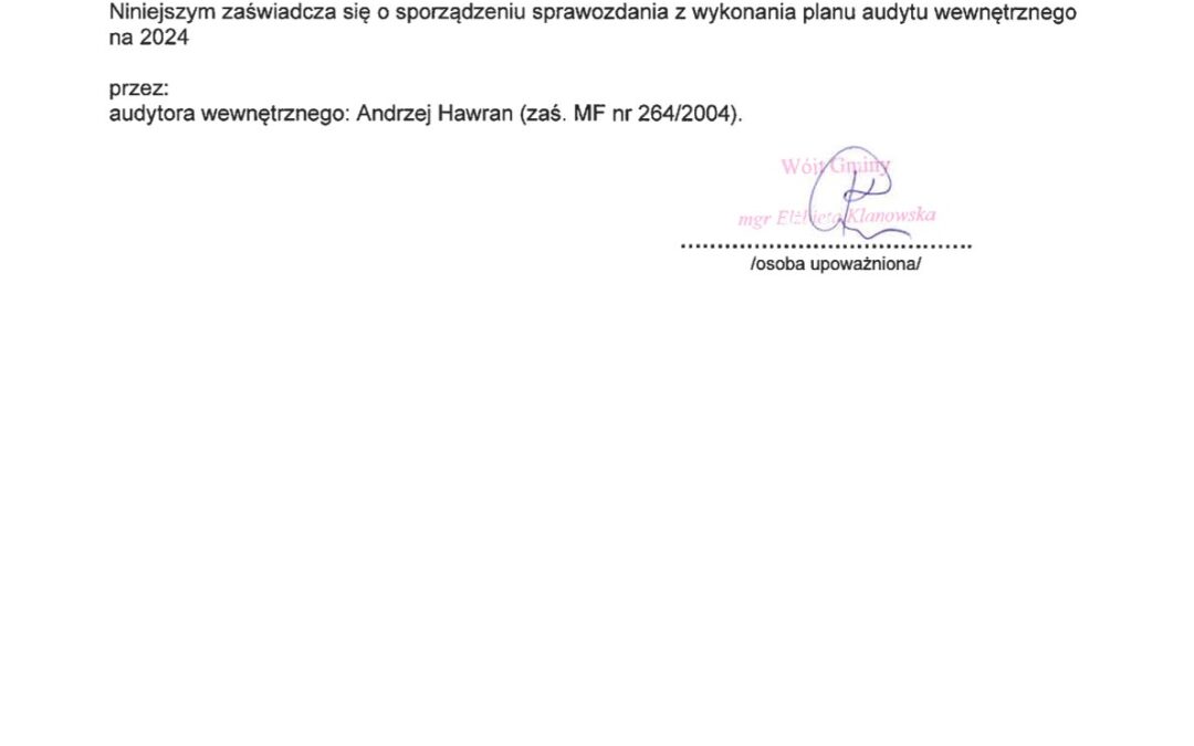 Zaświadczenia o sporządzeniu sprawozdania z wykonania planu audytu wewnętrznego