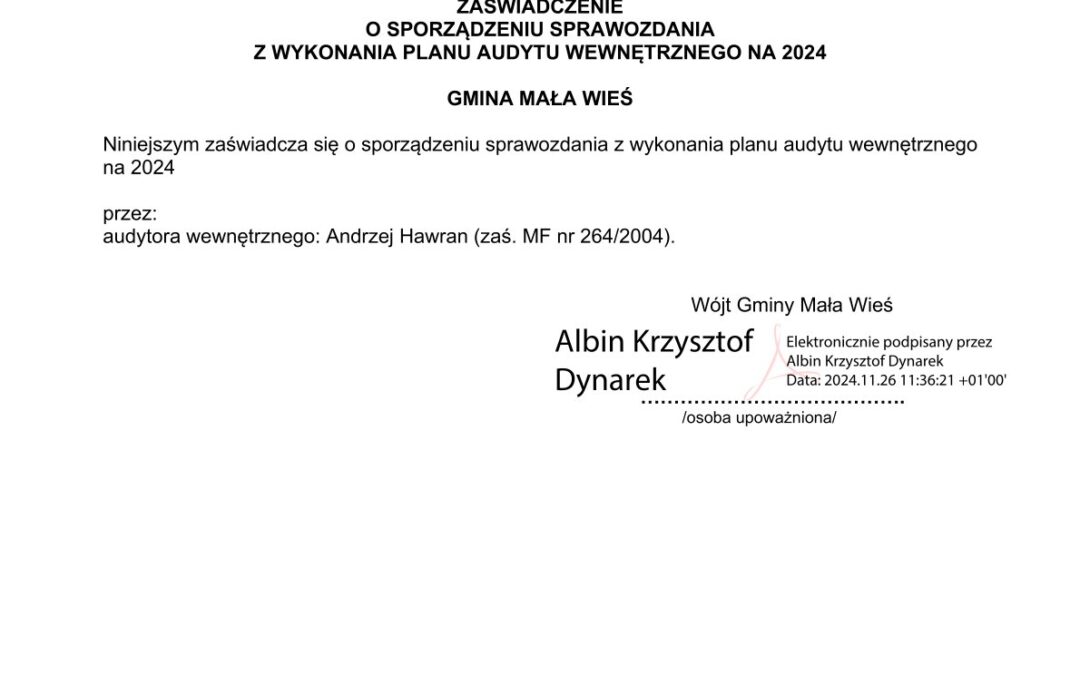 • Zaświadczenia o sporządzeniu sprawozdania z wykonania planu audytu wewnętrznego