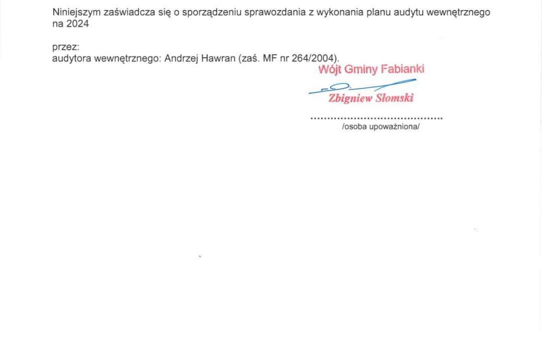 Zaświadczenia o sporządzeniu sprawozdania z wykonania planu audytu wewnętrznego