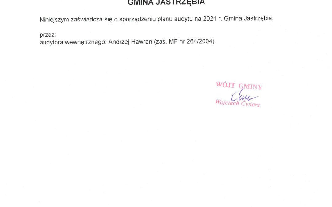 Zaświadczenia o sporządzeniu planu audytu wewnętrznego